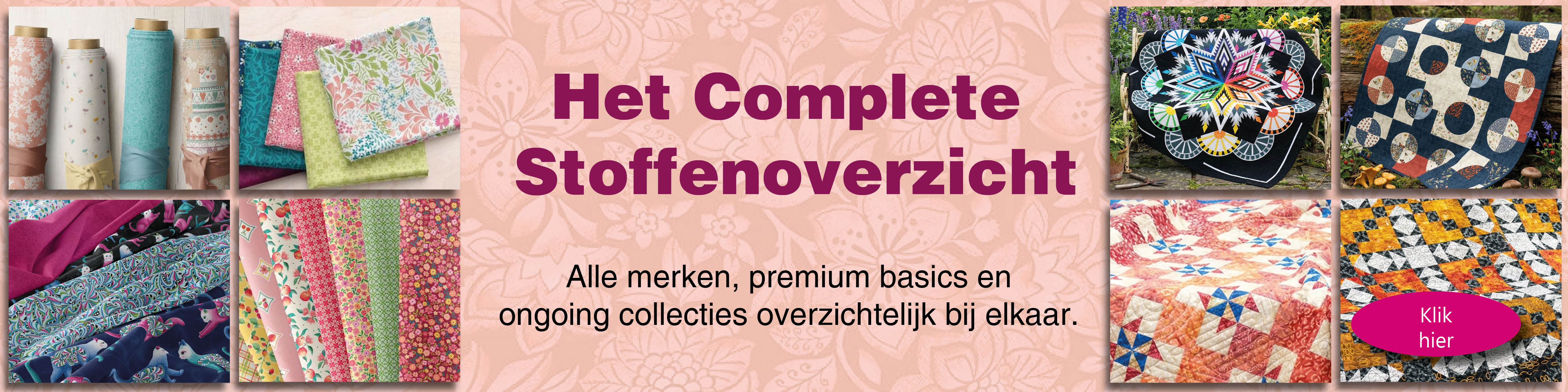 Regelmatig verschijnen nieuwe patchwork- en quiltcollecties. Uw keuze uit deze series kunt u eenvoudig via ons reserveren. Zodra de artikelen beschikbaar zijn, zorgen we ervoor dat u de allernieuwste stoffen snel in uw winkel heeft. Naast designercollecties bieden we een breed scala aan basisstoffen: meer dan 1.800 basics van prachtige kwaliteit, in alle denkbare kleuren en dessins, houden we op voorraad.