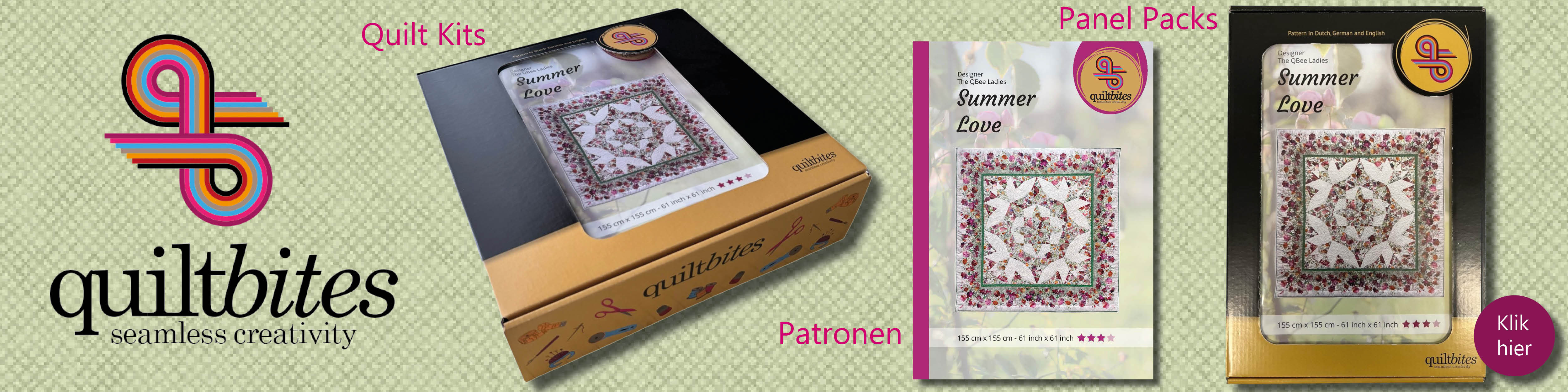 Inspiratie uit patchwork- en quiltpatronen is onmisbaar en deze is volop bij ons aanwezig in ons eigen QuiltBites® programma, de paper-piecing patronen van Sassafras Lane, de kleurrijke, moderne designs van Colourwerx en de quiltprojecten van Ferdina Art Studio.