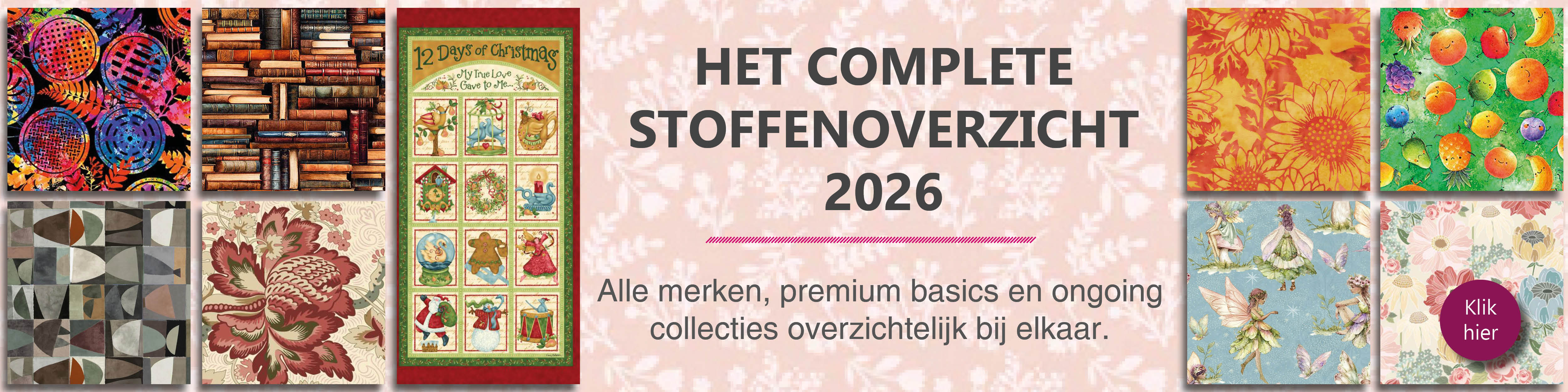 Regelmatig verschijnen nieuwe patchwork- en quiltcollecties. Uw keuze uit deze series kunt u eenvoudig via ons reserveren. Zodra de artikelen beschikbaar zijn, zorgen we ervoor dat u de allernieuwste stoffen snel in uw winkel heeft. Naast designercollecties bieden we een breed scala aan basisstoffen: meer dan 1.800 basics van prachtige kwaliteit, in alle denkbare kleuren en dessins, houden we op voorraad.