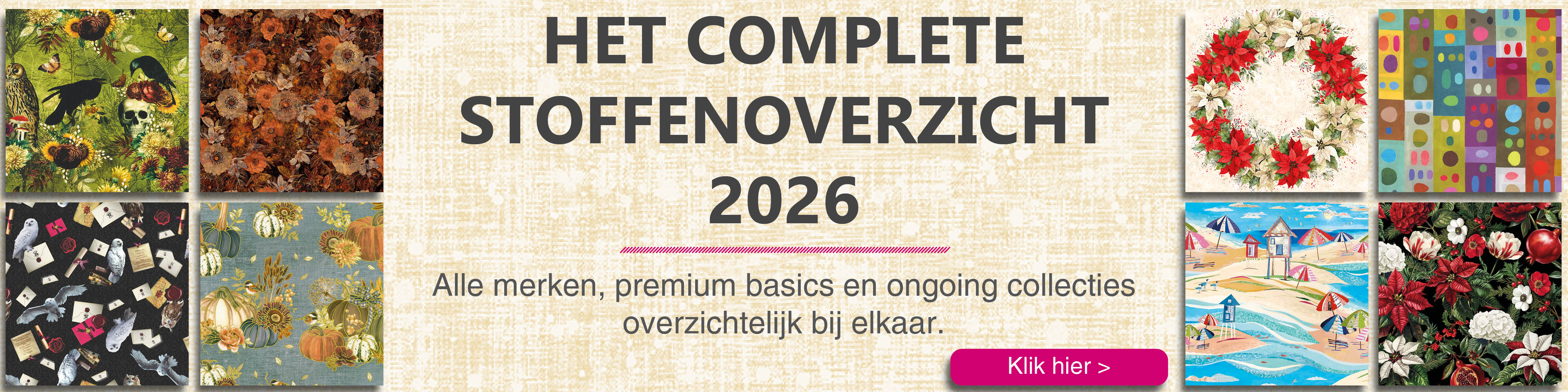 Regelmatig verschijnen nieuwe patchwork- en quiltcollecties. Uw keuze uit deze series kunt u eenvoudig via ons reserveren. Zodra de artikelen beschikbaar zijn, zorgen we ervoor dat u de allernieuwste stoffen snel in uw winkel heeft. Naast designercollecties bieden we een breed scala aan basisstoffen: meer dan 1.800 basics van prachtige kwaliteit, in alle denkbare kleuren en dessins, houden we op voorraad.